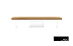 The wooden seat, measuring 8 cm thick, comes in two variations: one with the ends completely closed, the other with recessed ends that can be customised with coloured glass. The Air Wildwood bench can accommodate between two and five people, depending on the length of the seat, and pairs perfectly with the Air Wildwood table, adding even more lightness to the room.