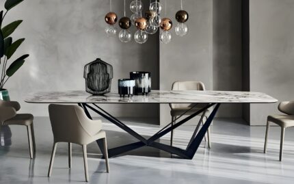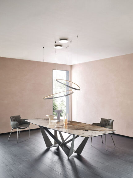 The table top is available in a range of finishes, each one capable of filling the interior with personality: from the warmth of wood in the Wildwood version to the refinement of coloured glass, the Air table complements different contexts and styles with originality.