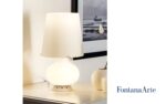 Table lamp with diffused light not dimmable, double light controls. The double light switch allows to illuminate the diffuser and the base separately. Painted metal frame. Diffuser and base made of blown glass with satin-finish. Black power cable, plug and switch. Plug-in power supply with interchangeable plugs (UK, USA, UE). Integrated led.
