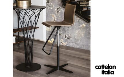 - Seat in curved plywood, blanched beech veneered, blanched oak, stained dark walnut, black or white lacquered, or in leather and stainless steel.