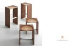 The Ripples bench by Toyo Ito, winner of the 2004 Golden Compass, has blossomed into a collection of different furniture complements. Amongst them, we may highlight the Ripples stool, fabricated with a laminated composite of five different solid woods. The seat shape, carved with industrial technology yet entirely hand-finished, feels soft and rich due to both the ductility of wood and Horm’s passion for craftsmanship. Slide your hand along the surface to feel the seamless transition between walnut, mahogany, cherry, oak and ash.