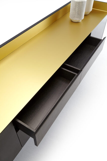The eye cannot help but be drawn by the sophisticated construction of the sofa and the sartorial aesthetic elevated by generous panels of full-grain leather and scrupulously curated details, allowing you to mix and match the various materials, finishes and colour effects.